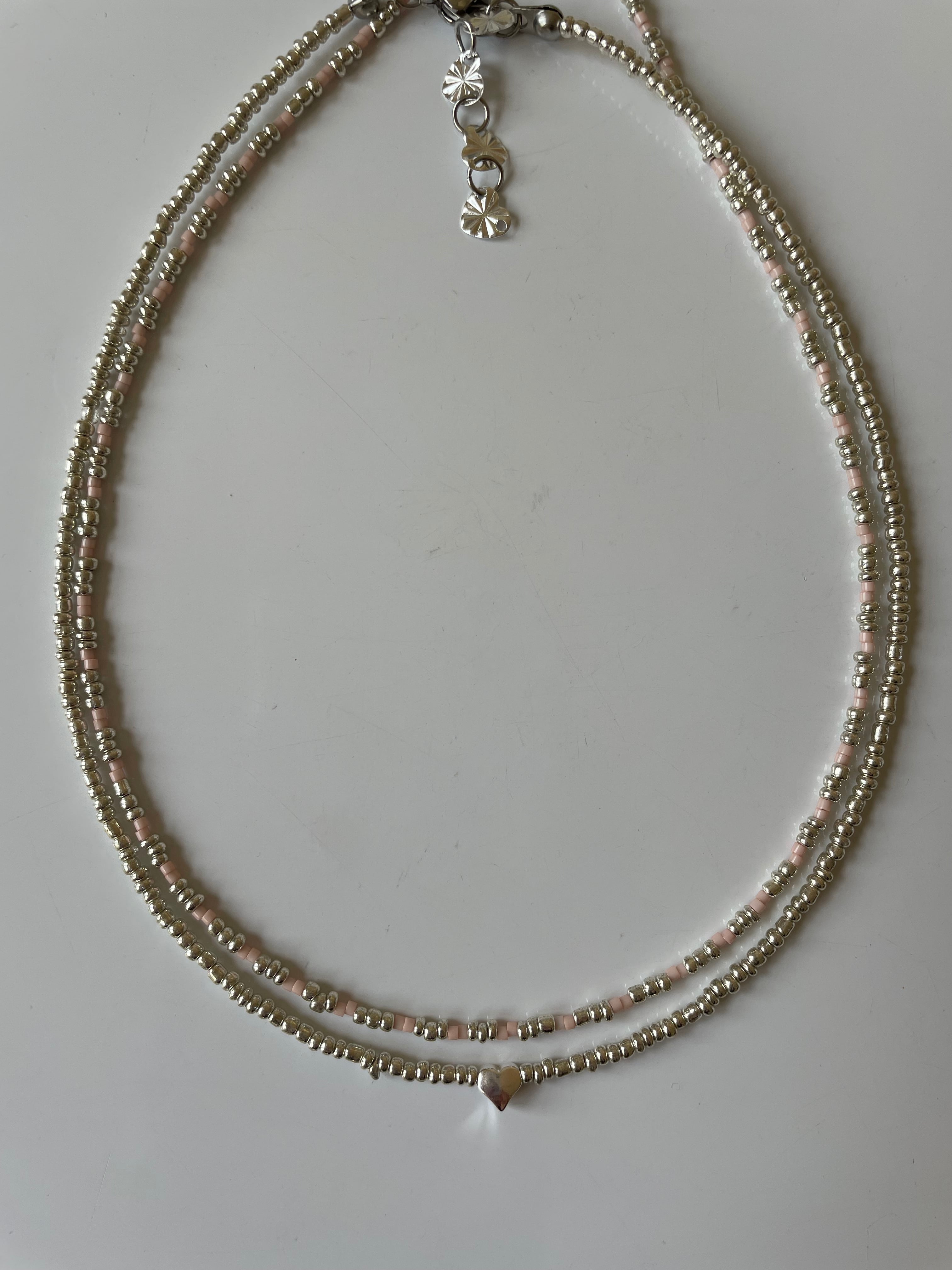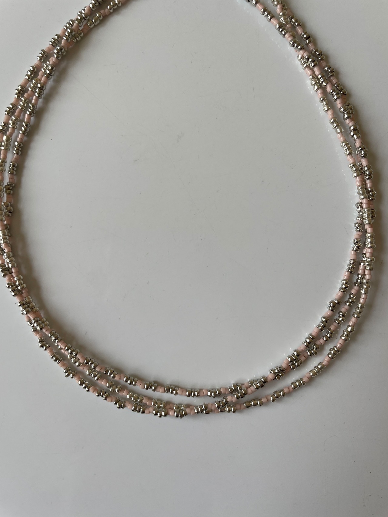 絶妙なニュアンスピンクのネックレスです。