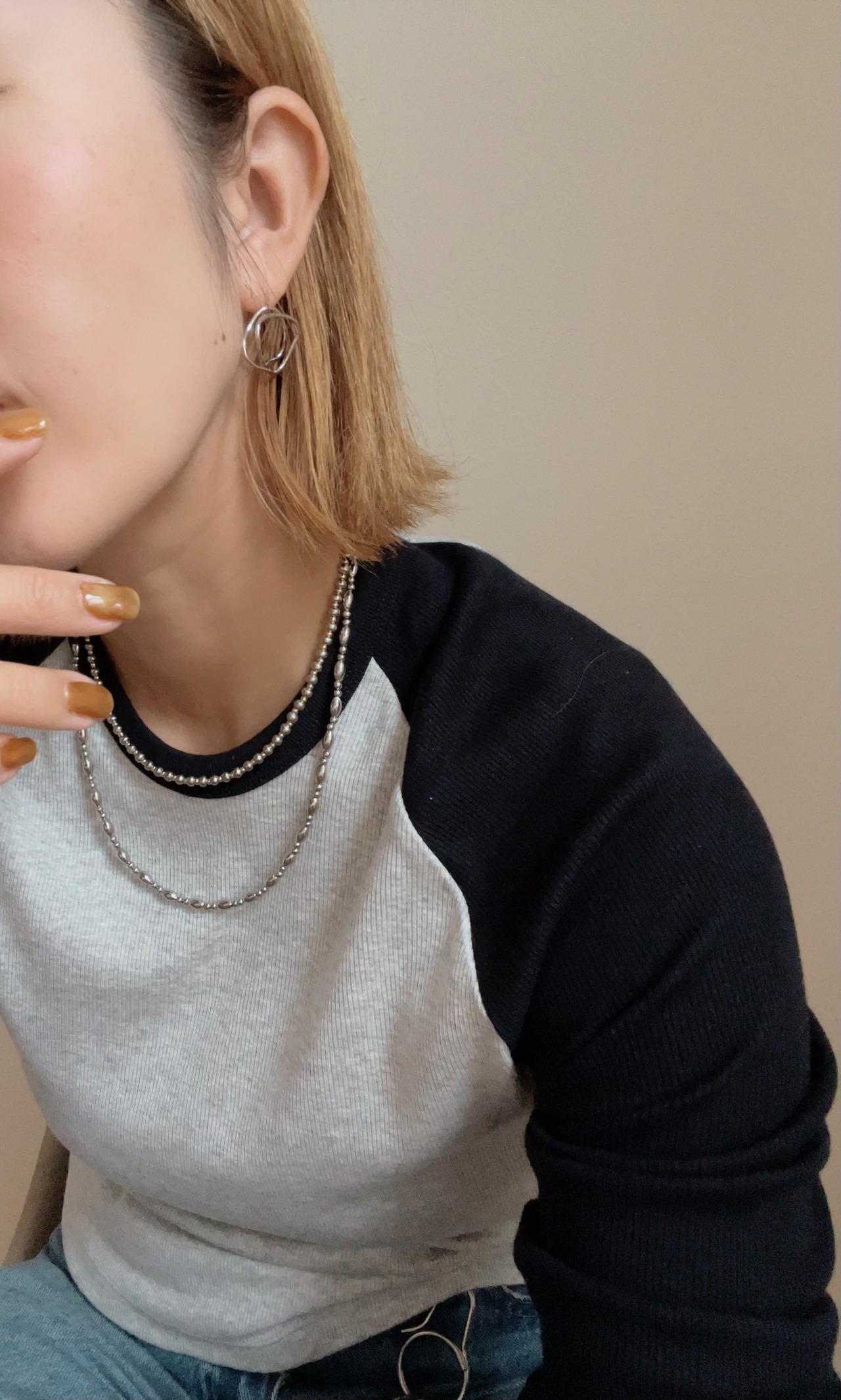 2カラーで重ね付けし易いネックレス。