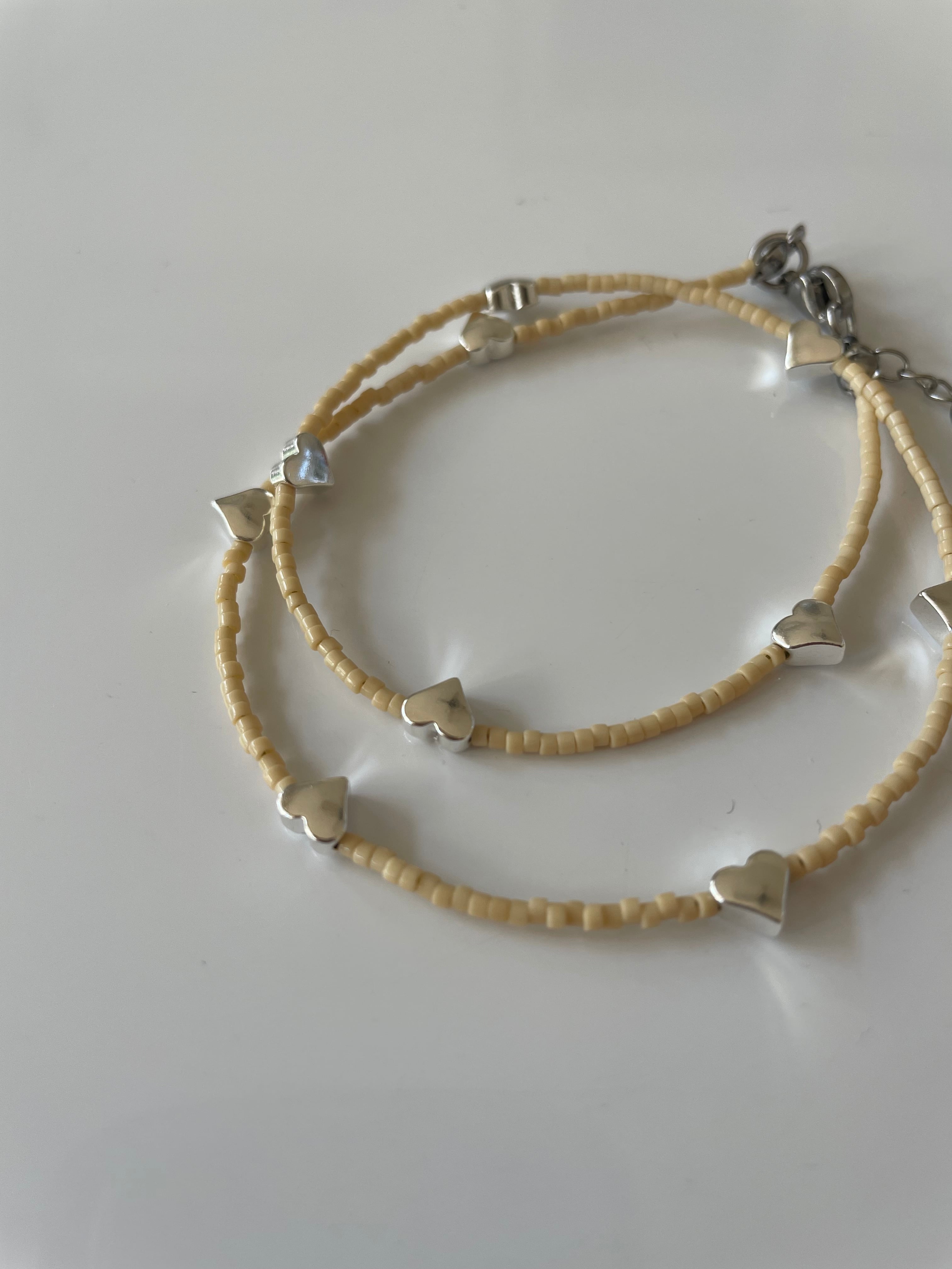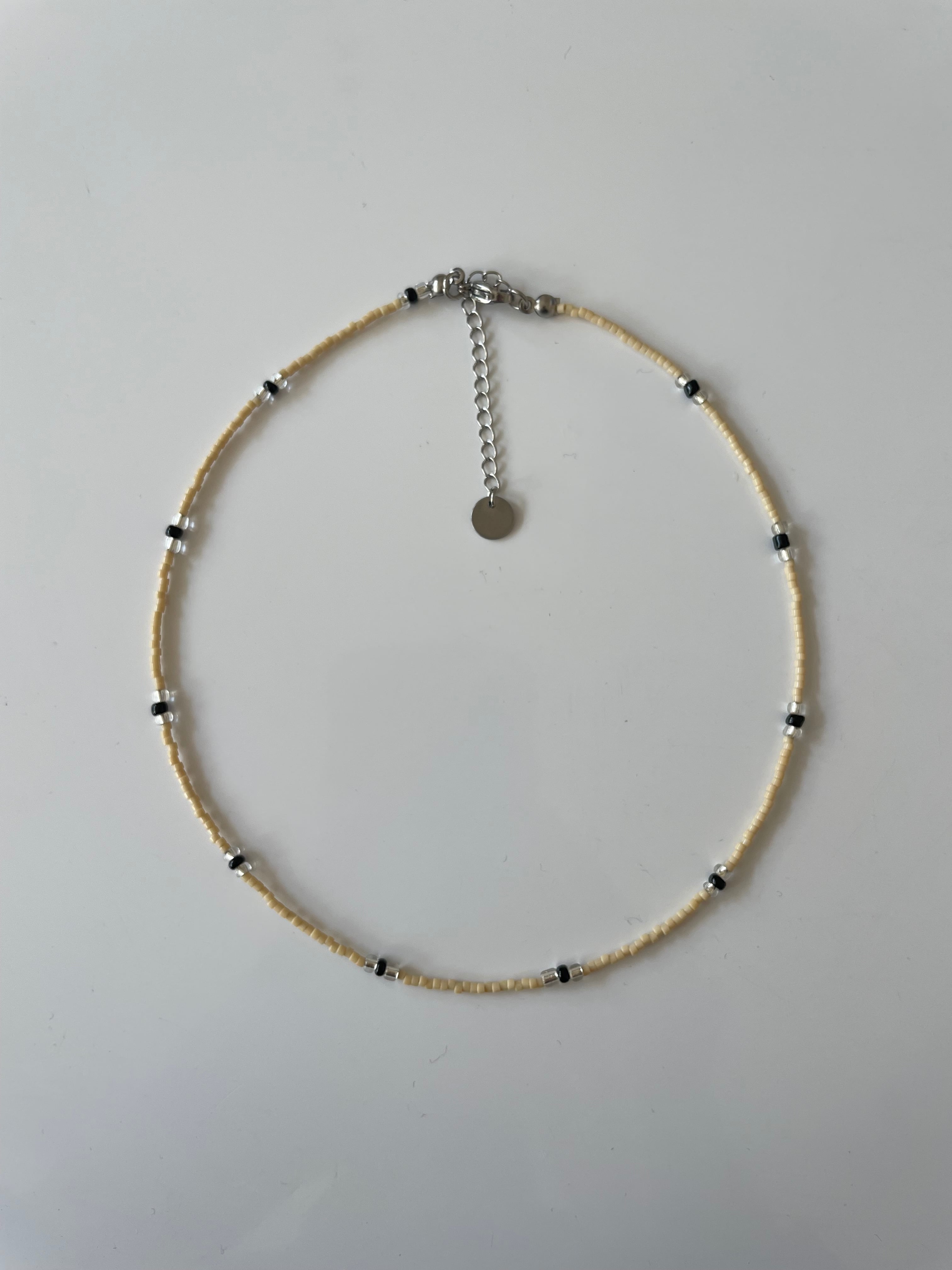 テーマカラーのバターイエローに締め色ブラックビーズで大人のニュアンスネックレスに仕上がっております。
